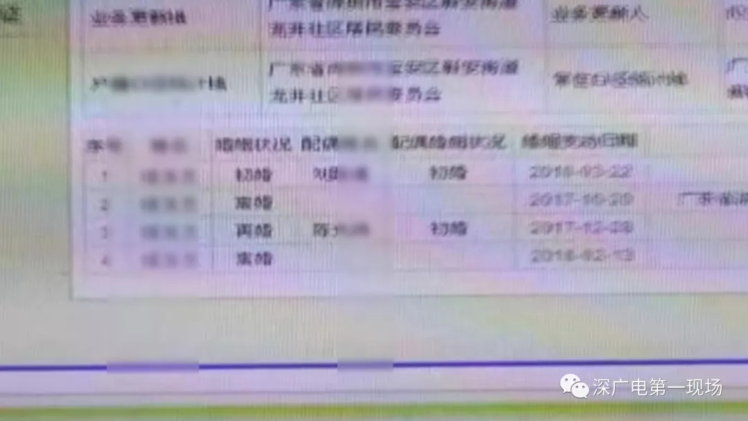 登記表上注明,伍小姐與2010年3月在深圳新橋街道沙企社區(qū)與一名劉姓男子結(jié)婚;但在2017年10月,兩人又被龍井社區(qū)登記為離婚。伍小姐表示,信息表中登記的這位丈夫她并不認(rèn)識(shí)。她也十分肯定,自己從未有過婚姻。但因?yàn)殡x婚時(shí)間與后一段婚姻開始的時(shí)間十分接近,丈夫陳先生認(rèn)定,伍小姐存在婚姻欺詐的行為。