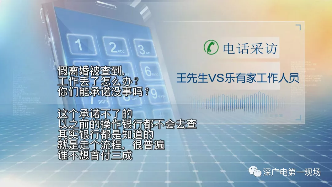樂有家公司通報稱,《第一現(xiàn)場》曝光的萬豪月半山分行的王姓、陳姓業(yè)務(wù)員,以及蘭溪谷分行的曹姓業(yè)務(wù)員,提及可以協(xié)助買方通過“真假離婚”規(guī)避限貸政策,降低購房首付的言辭,已違反國家房地產(chǎn)調(diào)控政策、政府相關(guān)法律法規(guī)、行業(yè)規(guī)范等,造成惡劣影響,對相關(guān)人員進行嚴(yán)肅處理。