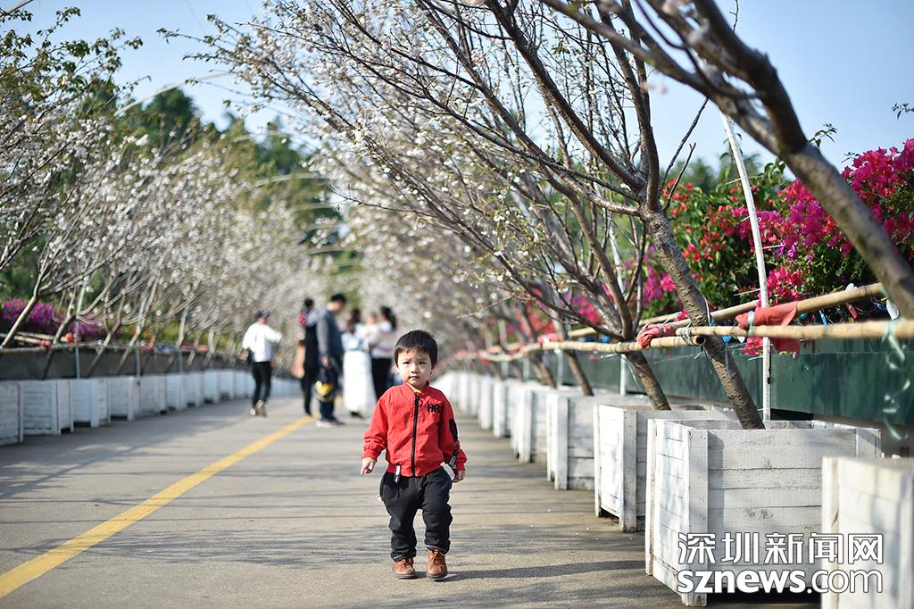 深圳新聞網(wǎng)3月12日訊 (記者 楊浩翰 鐘鴻冰)春雨喚醒了深圳的繁花,“流浪的太陽”回歸后,3月12日的深圳人沐浴在陽光與花海中。在觀瀾生態(tài)體育園,1000多株櫻花所打造的“櫻花大道”更是成為不少游客“打卡”處。