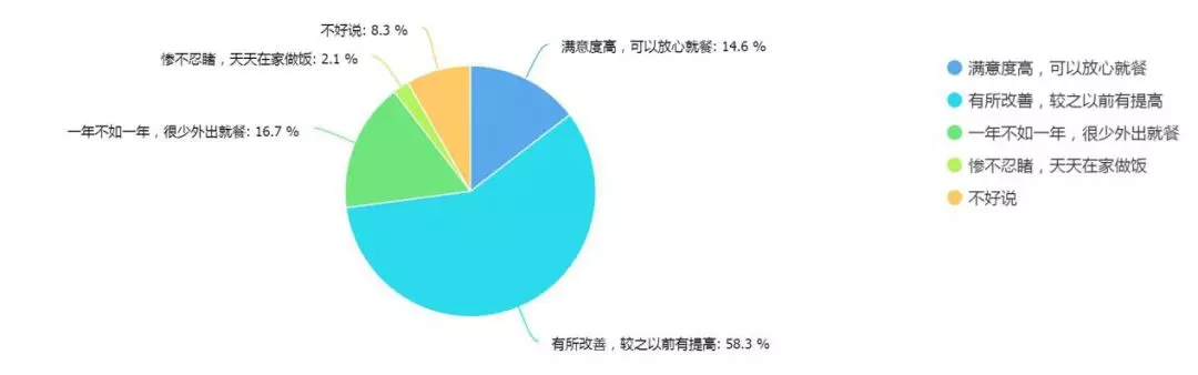 對(duì)于深圳白領(lǐng)非常關(guān)心的餐飲店面,接近6成受訪者認(rèn)為比之前有所改善,14.6%受訪者認(rèn)為可以放心就餐