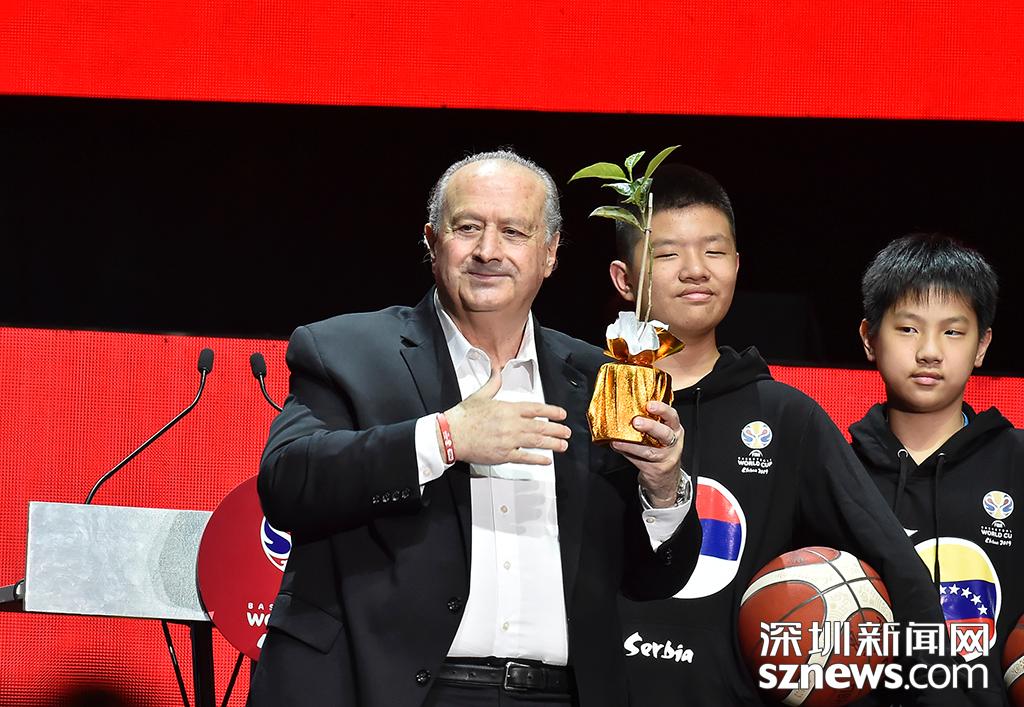 國(guó)際籃聯(lián)主席霍拉西奧·穆拉托雷在活動(dòng)中被贈(zèng)予盆栽