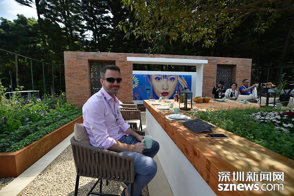 設(shè)計(jì)師戴昆侖與他設(shè)計(jì)的作品現(xiàn)代廚房花園合影
