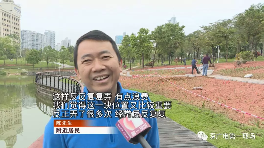 深廣電第一現(xiàn)場2019年3月25日訊 道路反復(fù)開挖是廣大市民對于城市建設(shè)過程中最不滿意的一種現(xiàn)象。除此之外,把公園里面的綠地來回折騰也很容易引起人們的質(zhì)疑,最近就有觀眾向《第一現(xiàn)場》反映。中心公園里的一塊草坪,反復(fù)折騰快半年了也沒弄出個模樣來這到底是要搞哪出?