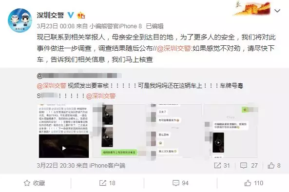 為了確保車內(nèi)乘客安全,深圳交警與舉報人進行聯(lián)系,與此同時迅速掌握車輛及駕駛?cè)诵畔ⅲ?/span>對車輛駕駛情況展開調(diào)查持續(xù)關(guān)注車輛動態(tài)。