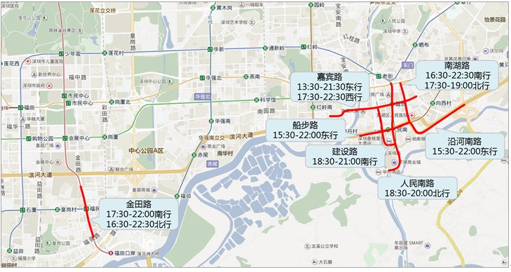 預(yù)計(jì)主要擁堵路段有僑城東路(14:00-18:00北行)、白石路(15:00-17:00東行)。