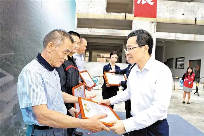 在光明科學城土地整備項目集中清拆現(xiàn)場會上,光明區(qū)委書記王宏彬、區(qū)長劉勝為10名被搬遷人代表送上感謝信。感謝信上寫著: