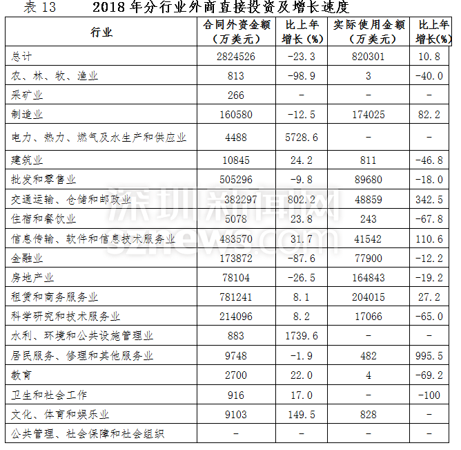 2018年,深圳全市固定資產投資比上年增長20.6%。其中,房地產開發(fā)投資增長23.6%;非房地產開發(fā)投資增長18.4%。分投資主體看,國有經濟投資增長36.7%;民間投資增長12.5%;港澳臺商經濟投資下降22.6%;外商經濟投資增長30.3%。