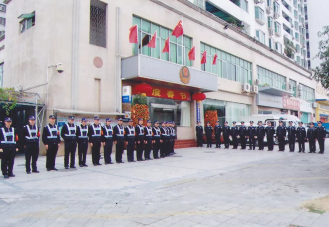 思緒隨著照片一頁頁翻飛,1991年5月28日,經(jīng)國務(wù)院批準(zhǔn),福田保稅區(qū)正式成立,一曲改革開放的激揚樂章在這片土地奏響,大興土木,人心思進。1997年,隨著福田保稅區(qū)入駐企業(yè)的增加,周邊住宅區(qū)入住人員也逐漸增多,各種刑事、治安案件迅速上升,治安壓力越來越大,為加強社會治安管理,方便群眾辦事,深圳市福田保稅區(qū)公安處正式成立,這便是福保派出所的前身。當(dāng)時的公安處轄區(qū),東起國花路,西至益田南路、新洲路,南至深圳河,北至福強路,面積約2.13平方公里。