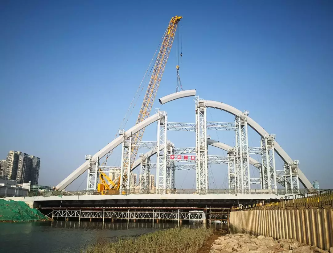 偌大的兩節(jié)鋼拱最后合攏成