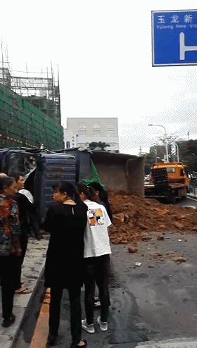 羅湖一渣土車道路側翻,車頭已嚴重變形!目擊者:有行人被壓