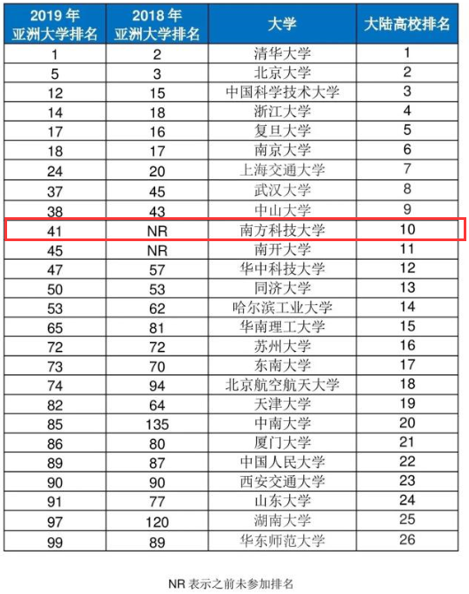 近日,2019年泰晤士亞洲大學(xué)排名出爐南科大排名內(nèi)地10強(qiáng)