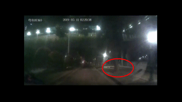 ↑從劉師傅提供的車輛監(jiān)控可以看到,當(dāng)時車輛正常行駛在機動車道,可倒地的男子卻摔倒在人行道上,兩者之間也有一定的距離。