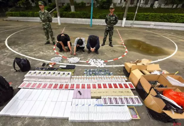 5月17日,十中隊官兵查獲一起飛線走私,這是清點繳獲的走私物資現(xiàn)場。