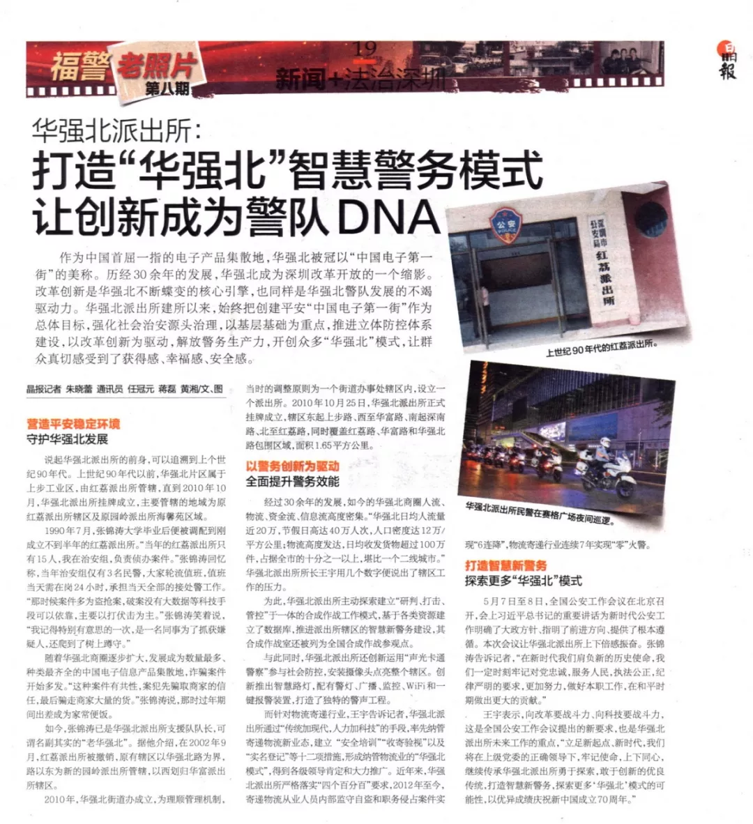 如今,張錦濤已是華強(qiáng)北派出所支援隊(duì)隊(duì)長(zhǎng),可謂名副其實(shí)的“老華強(qiáng)北”。據(jù)他介紹,在2002年9月,紅荔派出所被撤銷(xiāo),原有轄區(qū)以華強(qiáng)北路為界,路以東為新的園嶺派出所管轄,以西劃歸華富派出所轄區(qū)。
