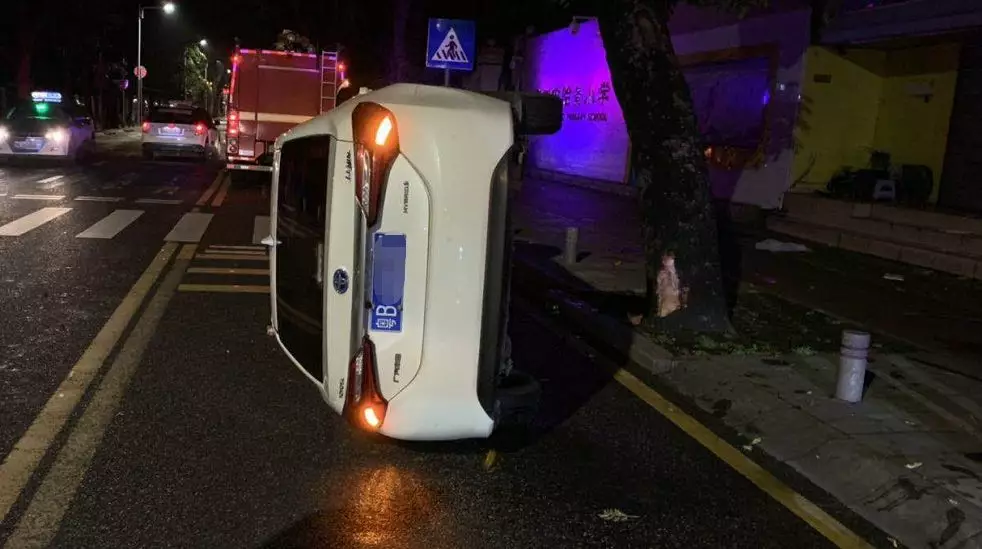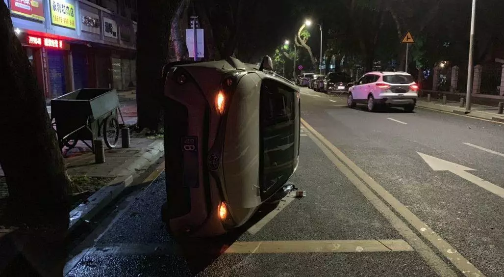 深圳交警接報(bào)后,立即趕往事故現(xiàn)場(chǎng)進(jìn)行處理。民警到達(dá)事故現(xiàn)場(chǎng)時(shí),只見(jiàn)涉事車輛側(cè)翻在路肩旁,白色小車左側(cè)駕駛位已經(jīng)凹陷變形,部分車身零部件脫落掉在地上,車輛因故障無(wú)法啟動(dòng),駕駛員李某未受傷。
