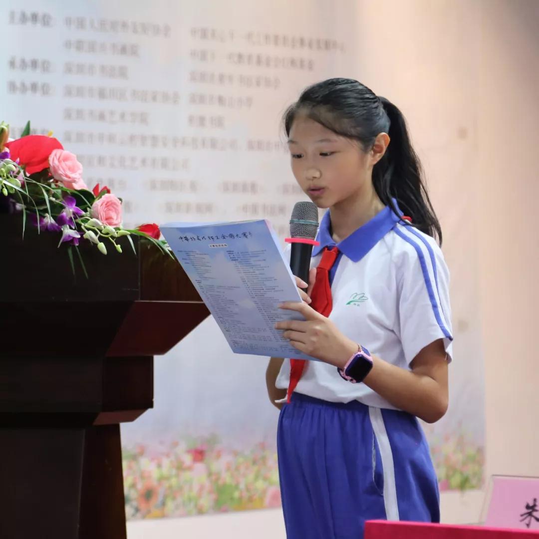 深圳市梅山小學(xué)胡穎欣同學(xué)代表參賽學(xué)生講話