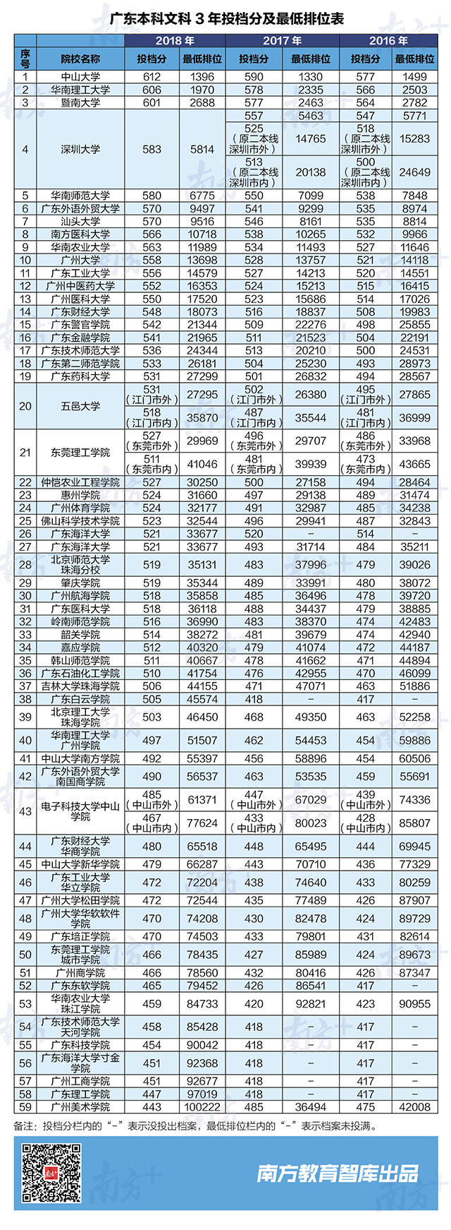 總體來看,廣東文科專業(yè)招生數(shù)量相對穩(wěn)定,且一些不適應(yīng)社會發(fā)展的文科專業(yè)正逐步調(diào)整,因此2018年文科一半以上的高校最低排位較2017年上升,文科生要考個好大學(xué),需要更努把力了。例如華南理工大學(xué)、華南師范大學(xué)、廣州大學(xué)3所高校最低排位比去年有所提升,分別提高365、324和59。