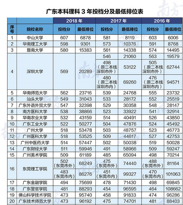 只能給大家找來廣東本科文理科3年投檔分和最低排位表!(部分)