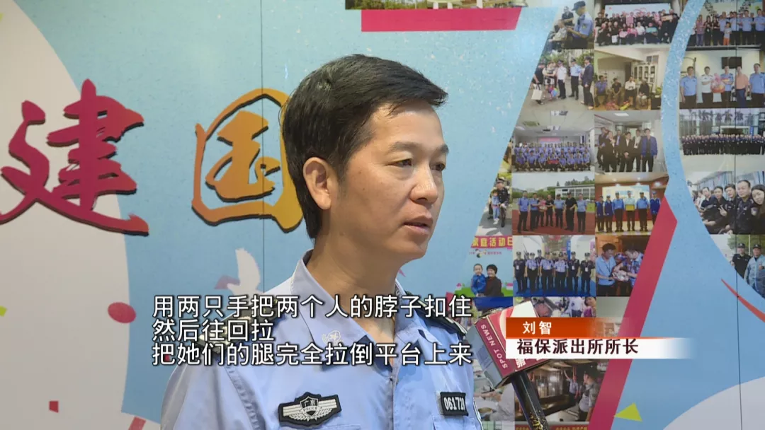 關鍵時刻,劉智一個箭步上前,雙手迅速摟住兩名女子的脖子,身體往后倒,順勢把二人從屋檐上拉了下來。