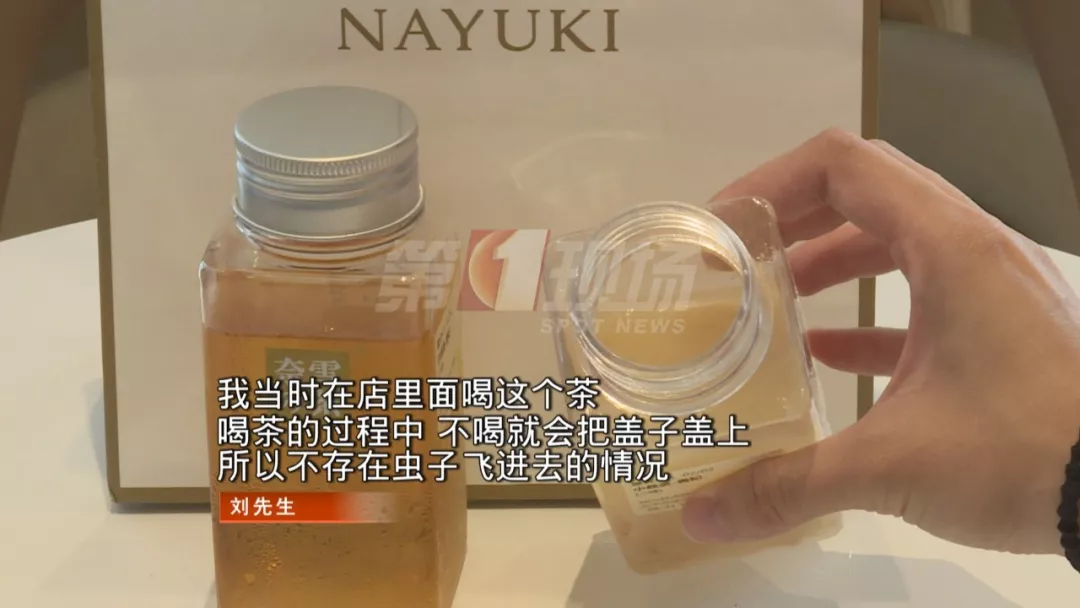 據(jù)劉先生介紹,他點(diǎn)的是當(dāng)季招牌產(chǎn)品“霸氣小荔荔”,這款飲料有一層厚厚的奶蓋,所以起初沒看到,喝到一半才發(fā)現(xiàn)竟然有蟲子。劉先生擔(dān)心的是,會(huì)不會(huì)已經(jīng)喝了一些小蟲進(jìn)肚?