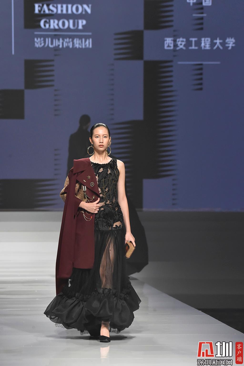 時裝優(yōu)秀學(xué)生組展示環(huán)節(jié),設(shè)計師田桔子作品,其畢業(yè)于西安工程大學(xué)