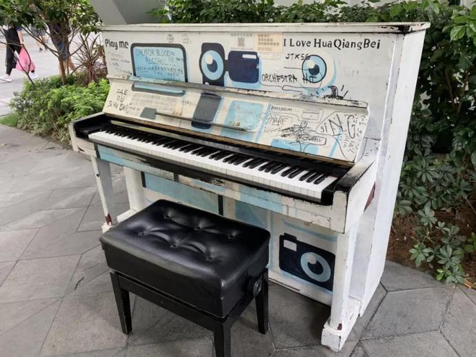 華強北街頭還擺放了公共鋼琴可供免費彈奏