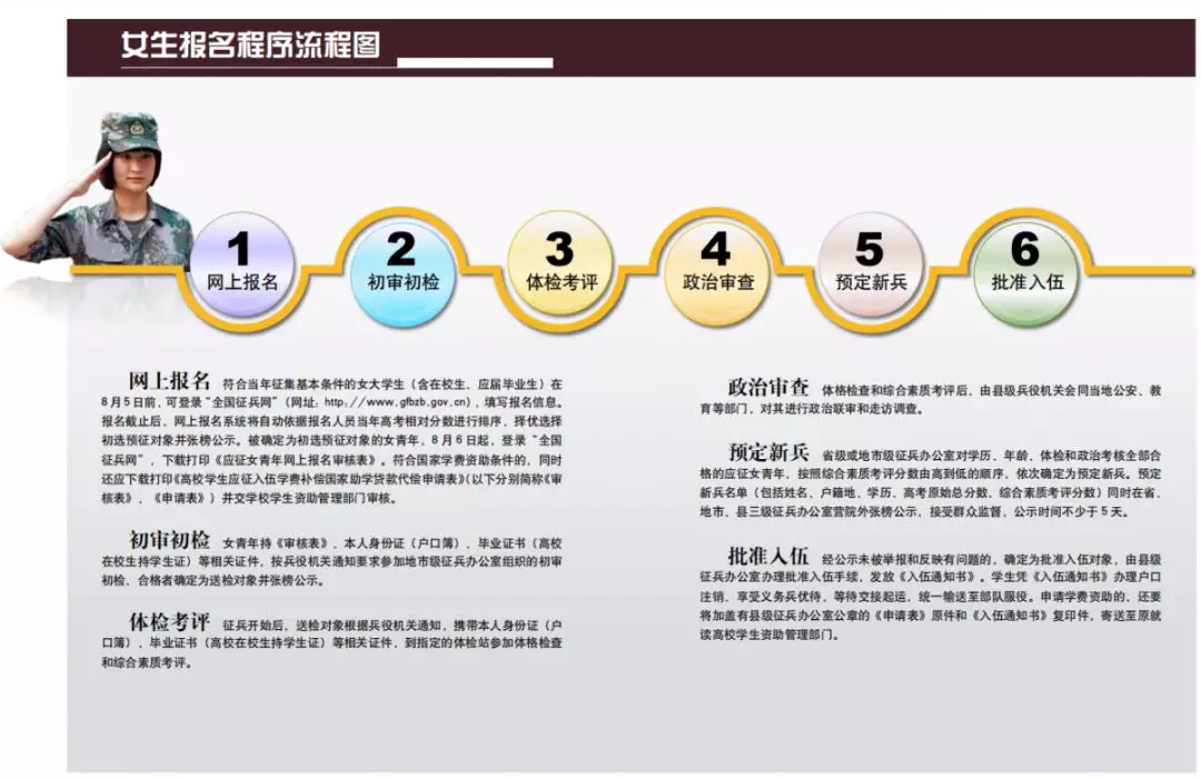 全國征兵(女兵)應征報名時間:截止至2019年8月5日18時截止。