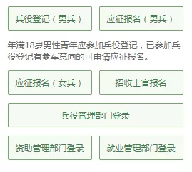 小編說:有些小伙伴看到這么多的菜單就有些懵了,其實不用緊張,如果你是第一次來的男生,直接從“兵役登記(男兵)”進入頁面就可以了;否則就從“應征報名(男兵)”進入頁面;如果想報名招收士官,就從“招收士官報名”進入頁面,不過,今年的招收士官貌似還沒開始
