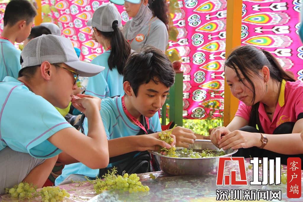 談起吐魯番此行,深圳育才第一小學(xué)五年級(jí)的學(xué)生巫鏑覺得葡萄溝最好玩,還可以摘葡萄,“這里葡萄很好吃,而且沒有核,還不用吐葡萄皮?!睋?jù)悉,吐魯番有600余種葡萄,其中的“無核白”葡萄最具特色,以無核、皮薄、味甜著稱。