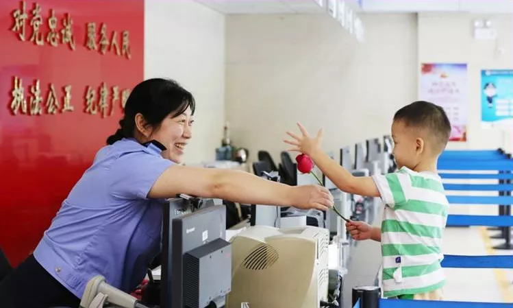 民警吳艷急忙站起來,雙手接過老人的材料,一邊安撫老人,一邊耐心地詢問情況。