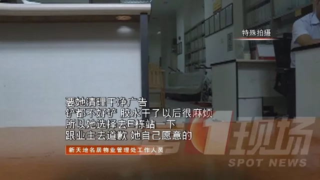 因為張貼的廣告過多,處理起來繁瑣且工作量很大,該名女子最后自己選擇了對業(yè)主和住戶們進(jìn)行舉牌道歉。