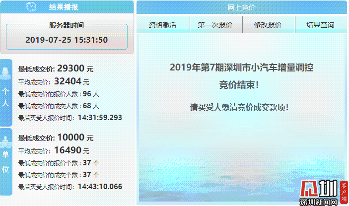 25日,7月粵B牌競價結(jié)果出爐
