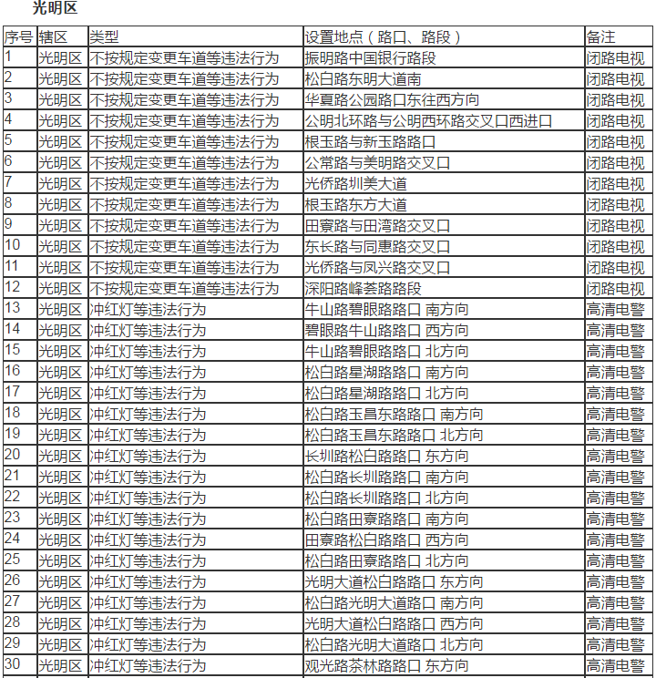 此次194套“電子警察”分布共涉及三個區(qū),分別是寶安區(qū)、光明區(qū)、龍崗區(qū)