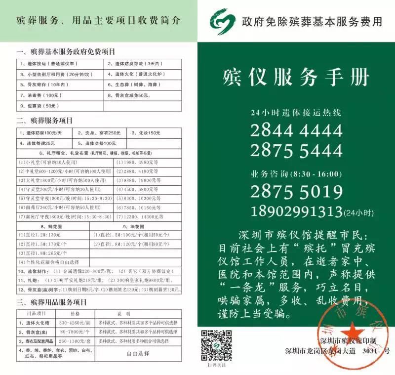 “深圳只有一家合法的殯儀館,就是深圳市殯儀館,其殯儀收費(fèi)標(biāo)準(zhǔn)可以通過‘深圳民政在線’的‘殯儀服務(wù)’查詢?!笔袣浌芩嚓P(guān)負(fù)責(zé)人表示,市民也可以關(guān)注“深圳市殯儀館”的微信公眾號查詢治喪流程、聯(lián)系電話和收費(fèi)標(biāo)準(zhǔn)。