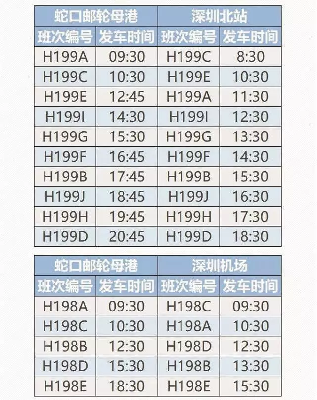 蛇口郵輪母港至深圳北站直通巴士每日往返20個班次,至深圳寶安機場直通巴士每日往返10個班次,單程票價為10元/人。8月18日前關注“招商蛇口郵輪母港”微信公眾號即可于蛇口郵輪母港二樓2號柜臺領取免費直通車票,每趟班次免費票數(shù)量有限,先到先得。