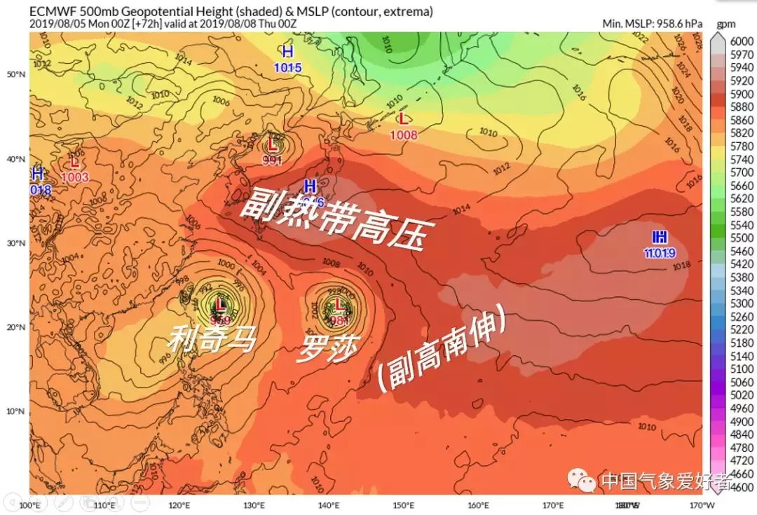 羅莎臺風(fēng)將會是一個又大又強(qiáng)的臺風(fēng)。由于個頭太大,副高壓不住,所以它不會來我國,最大可能是緩慢北上登陸日本。不過,羅莎將會阻止副高在利奇馬南側(cè)西伸,并且對利奇馬有互斥作用,是利奇馬臺風(fēng)的“導(dǎo)演”之一。總體看來,羅莎將會對利奇馬施加向西的作用力,促使利奇馬更靠近我國。
