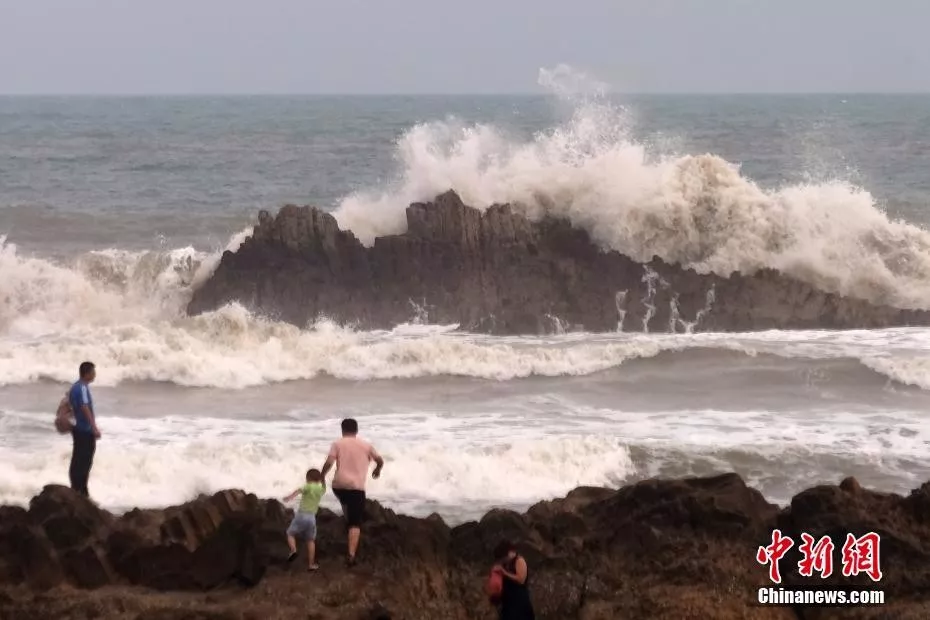 9日,浙江省溫嶺市石塘鎮(zhèn)金沙灘海邊掀起巨浪。新華社記者韓傳號(hào)攝