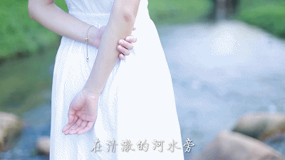 在清澈的河水旁