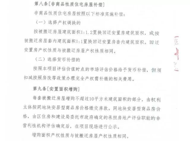 安置面積增購方面,每套被搬遷房屋增購不超過10平方米建筑面積的部分,由權利主體按同地塊安居型商品房價格繳交房款。