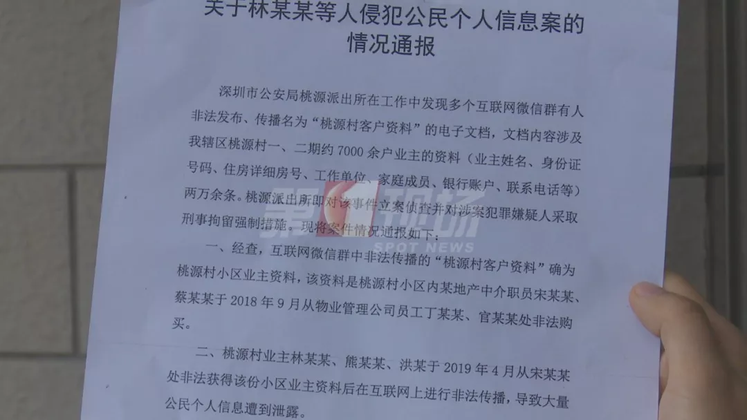 近日,深圳桃源村7千業(yè)主個人信息遭泄露