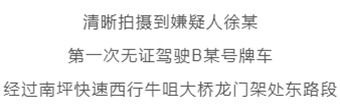 深圳交警立即展開調(diào)查,于2019年8月27日清晰拍攝到嫌疑人徐某第一次無證駕駛B某號牌車,經(jīng)過南坪快速西行牛咀大橋龍門架處東路段。