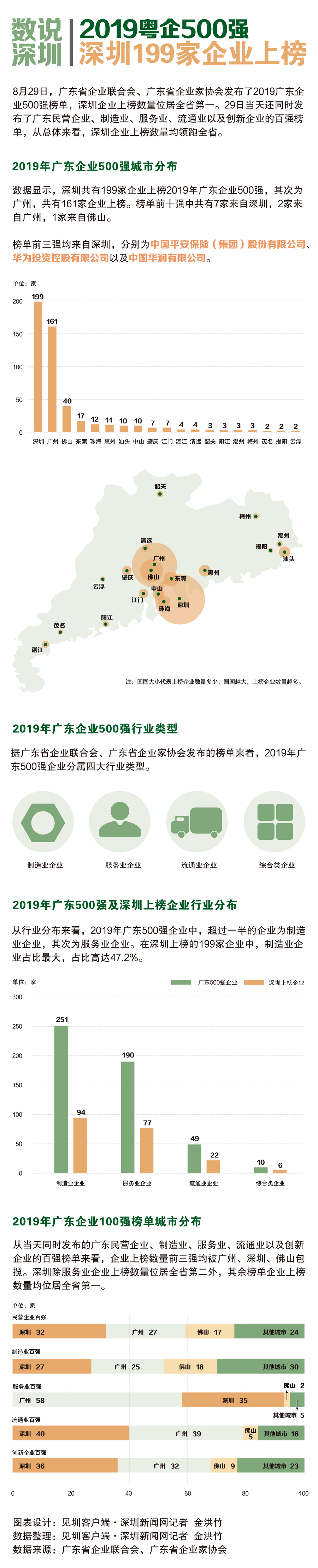 8月29日,廣東省企業(yè)聯(lián)合會(huì)、廣東省企業(yè)家協(xié)會(huì)發(fā)布2019廣東企業(yè)500強(qiáng)榜單,深圳企業(yè)上榜數(shù)量位居全省第一。