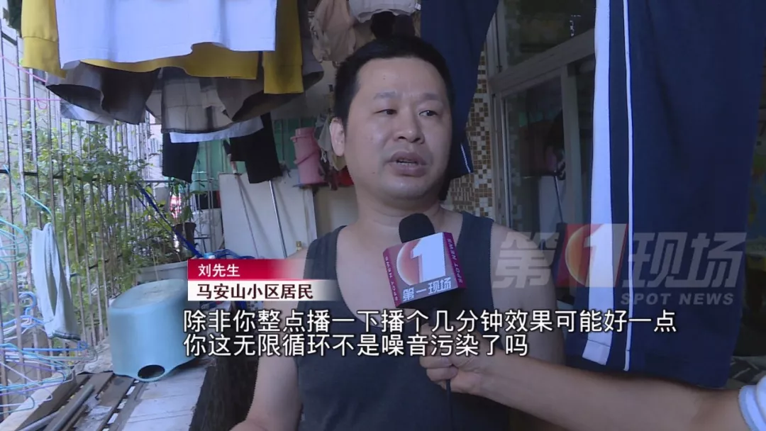 而這些天,剛好趕上劉先生熬夜加班,需要白天補(bǔ)覺,高音喇叭對(duì)著他家的窗戶循環(huán)播放,讓他難以入睡。