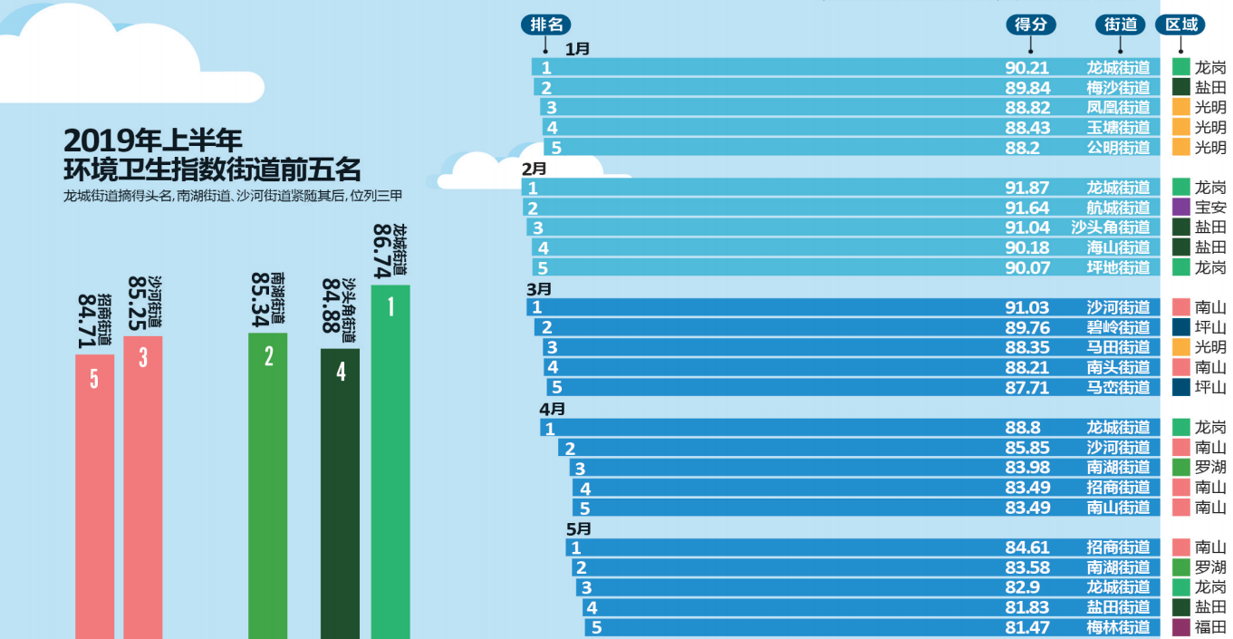 推進(jìn)環(huán)境質(zhì)量邁進(jìn)國(guó)際一流,深圳一直在行動(dòng)。細(xì)心的市民可能早已發(fā)現(xiàn),深圳市城市管理和綜合執(zhí)法局官方網(wǎng)站每個(gè)月都會(huì)發(fā)布“深圳市環(huán)境衛(wèi)生指數(shù)排行榜”,為深圳的環(huán)境衛(wèi)生“打分”。據(jù)了解,深圳市環(huán)境衛(wèi)生指數(shù)測(cè)評(píng)排名已連續(xù)開(kāi)展了兩年半,有效促進(jìn)了全市環(huán)境衛(wèi)生的提升和轉(zhuǎn)變。今年上半年的“成績(jī)單”顯示,全市各區(qū)(新區(qū))各街道你追我趕,測(cè)評(píng)工作帶動(dòng)社區(qū)環(huán)境改善,環(huán)境衛(wèi)生的整治提升得到了市民的廣泛認(rèn)可和好評(píng)。