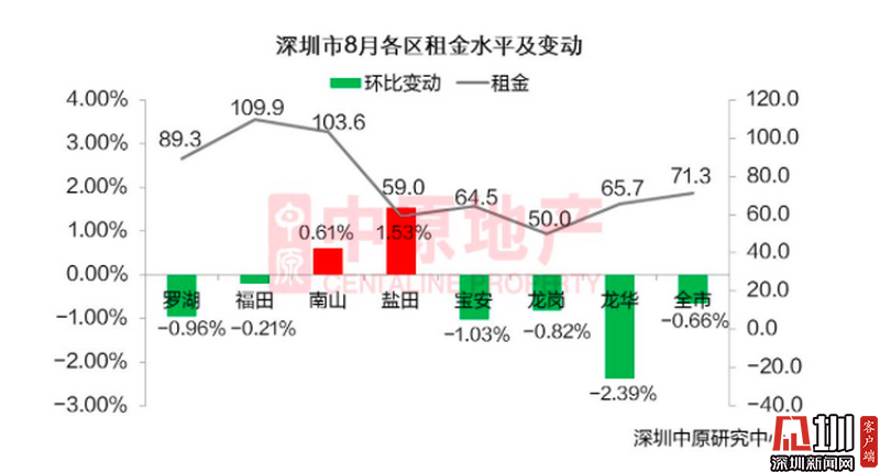 深圳8月各區(qū)租金水平