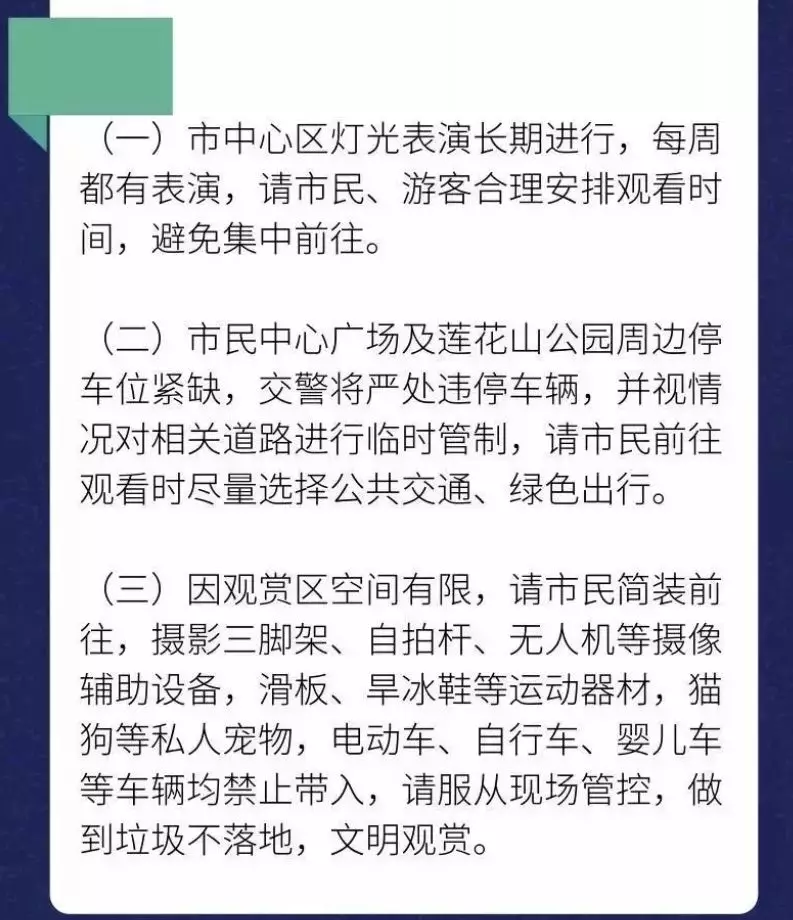 需要注意的是,最后一場燈光秀的播放時間較之以往有所調(diào)整,播放時間調(diào)整為21:00,