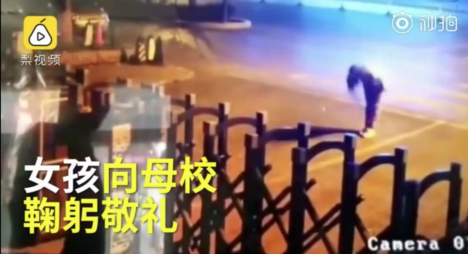 突然停下對著學校端正敬禮,