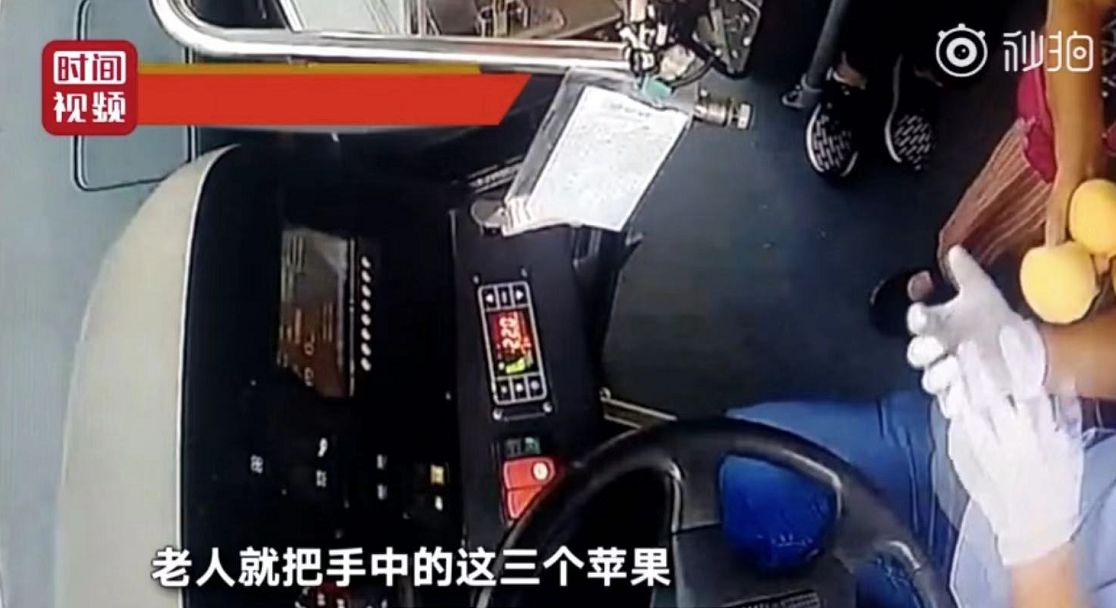 而老人隨后從包里拿出3個(gè)蘋果,