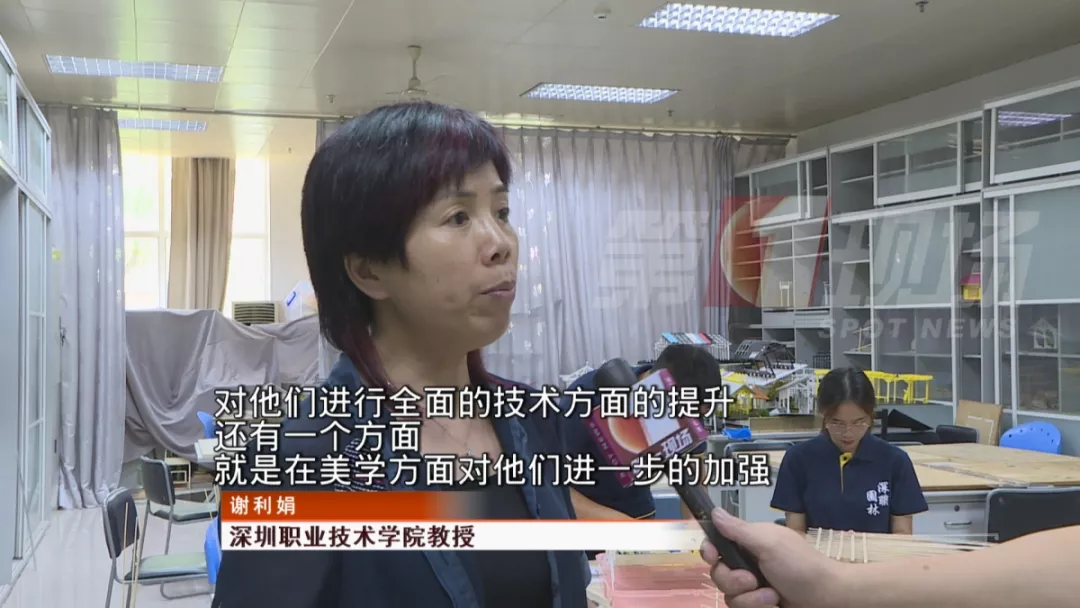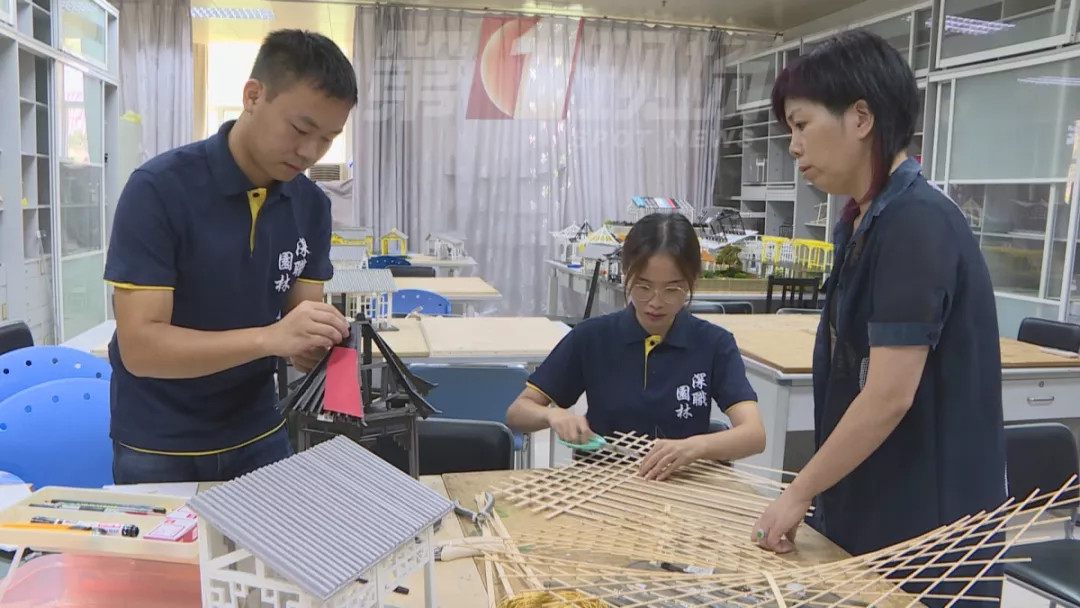 20號中午,在深圳職業(yè)技術(shù)學(xué)院的培訓(xùn)室,謝老師正在指導(dǎo)學(xué)生制作園林建筑的模型。這門技術(shù)不僅需要手巧,還要有藝術(shù)上的靈感和創(chuàng)意。