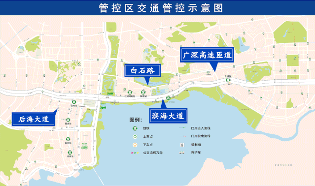 以后海大道、白石路、廣深高速匝道(白石路至濱海大道段)濱海大道的合圍區(qū)域。